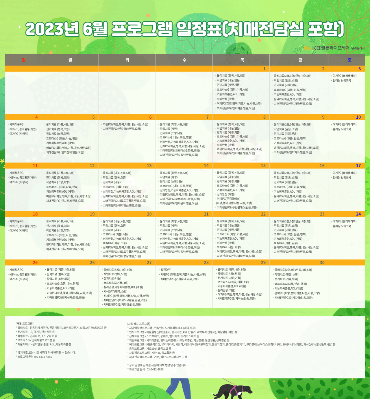 위례빌리지 [프로그램안내] 2023년 위례 빌리지 6월 프로그램 일정표 페이지 정보 작성자 KB 골든라이프케어 댓글 0건 조회 2,964회 작성일 23-05-24 12:35 목록 본문 목록 이전글[식단안내] 위례 빌리지 5월 5주차 식단표 23.05.26 다음글[ 오늘의 식단 ] 2023년 5월 23일 화요일 23.05.23