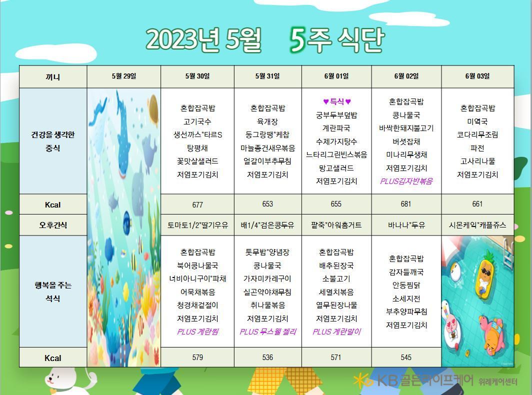 위례케어센터 [식단안내] 위례 케어센터 5월 5주차 식단표 페이지 정보 작성자 KB 골든라이프케어 댓글 0건 조회 2,334회 작성일 23-05-26 12:57 목록 본문 목록 이전글[ 오늘의 식단 ] 2023년 5월 26일 금요일 23.05.26 다음글[식단안내] 위례 빌리지 5월 5주차 식단표 23.05.26