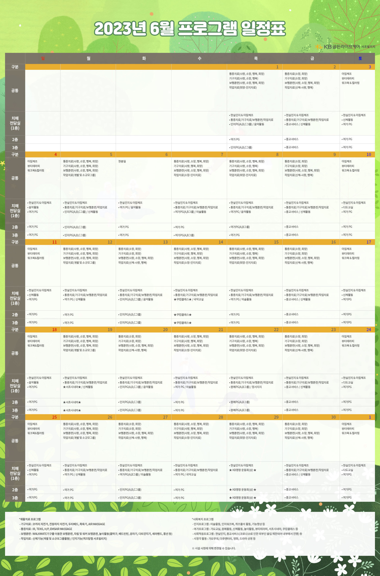 서초빌리지 [프로그램안내] 2023년 서초 빌리지 6월 프로그램 일정표 페이지 정보 작성자 KB 골든라이프케어 댓글 0건 조회 2,890회 작성일 23-06-01 14:28 목록 본문 목록 이전글[식단안내] 위례 빌리지 6월 1주차 식단표 23.06.02 다음글[프로그램 안내] 2023년 강동케어센터 6월 프로그램 일정표 23.05.31