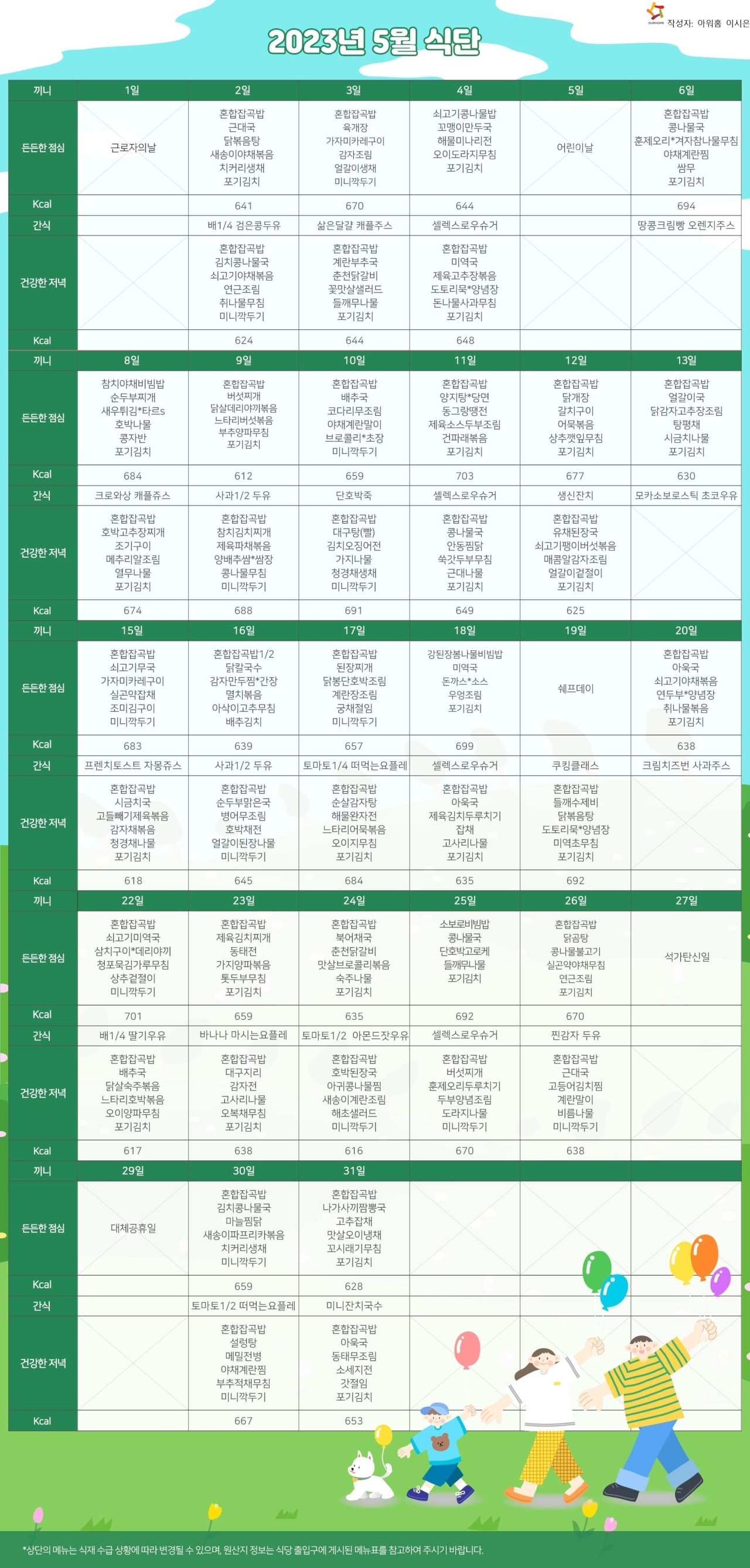 강동케어센터 [식단안내] 2023년 강동케어센터 5월 식단표 페이지 정보 작성자 KB 골든라이프케어 댓글 0건 조회 2,801회 작성일 23-04-27 14:28 목록 본문 목록 이전글[식단안내] 위례 빌리지 4월 4주차 식단표 23.04.28 다음글[프로그램 안내] 2023년 강동케어센터 5월 프로그램 일정표 23.04.27