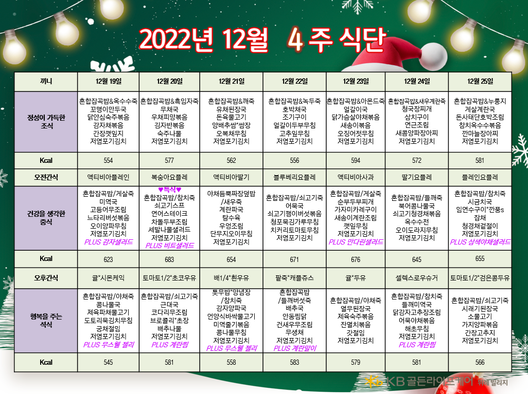 위례빌리지 [식단안내] 위례 빌리지 12월 4주차 식단표 페이지 정보 작성자 KB 골든라이프케어 댓글 0건 조회 2,357회 작성일 22-12-15 10:34 목록 본문 목록 이전글[식단안내] 위례 케어센터 12월 4주차 식단표 22.12.15 다음글[오늘의 식단] 2022년 12월 14일 수요일 22.12.14