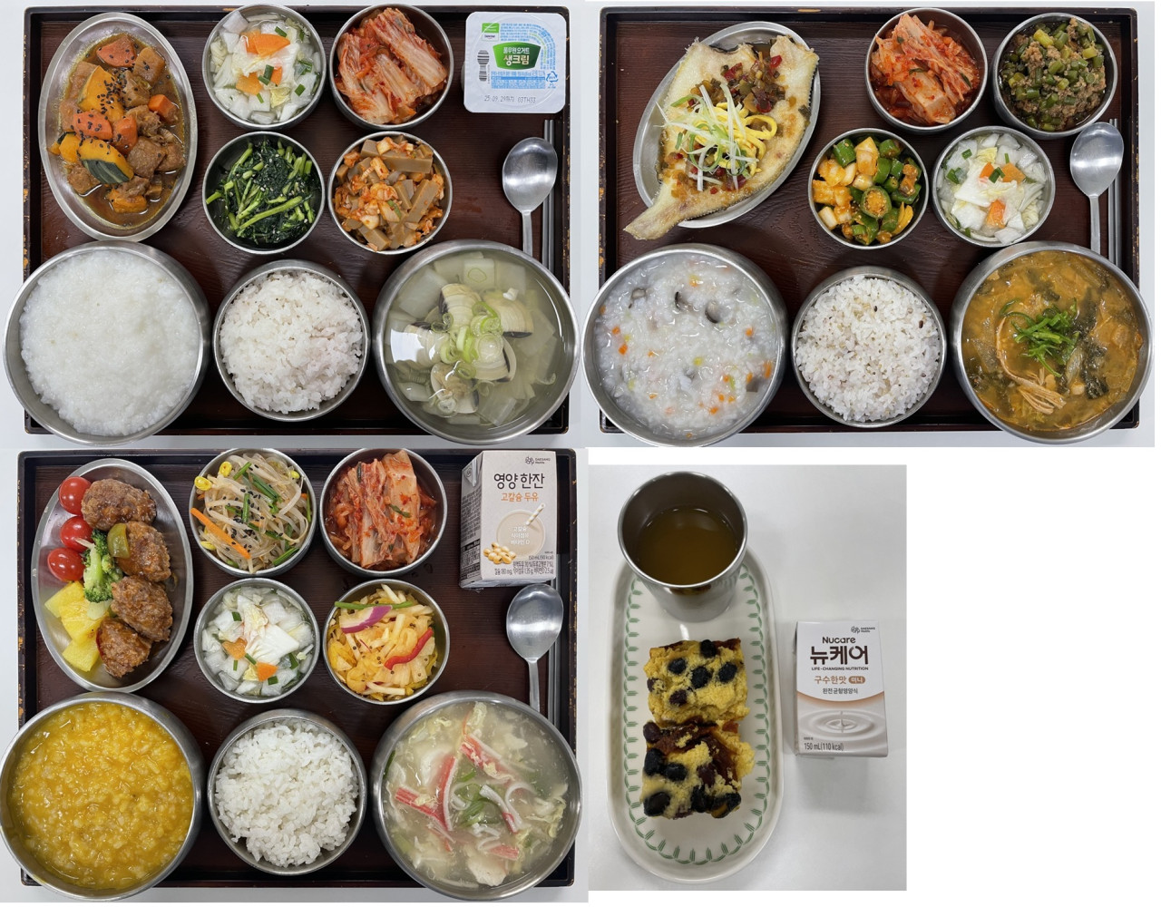 은평빌리지 [하루의 식단] 9월 11일 페이지 정보 작성자 최고관리자 댓글 0건 조회 3,218회 작성일 25-09-13 22:37 목록 본문 ◆ 조식 : 백미밥(잡곡밥)/흰죽, 백합탕, 단호박사태조림, 쑥갓나물무침, 도토리묵신김치무침, 포기김치/나박김치◆ 중식 : 찰보리밥/버섯야채죽, 시래기오리탕, 가자미살찜/양념장, 두반장마늘쫑볶음, 아삭고추양파무침, 포기김치/나박김치◆ 석식 : 백미밥(잡곡밥)/단호박죽, 게살연두부국, 떡갈비파인찹스테이크, 비빔당면, 통들무쌈무침, 포기김치/나박김치◇ 오후간식 : 수정과/단호박설기 목록 이전글[식단안내] 2025년 9월 3째주 식단표 25.09.13 다음글[오늘의식단] 9월 10일 중식 25.09.13