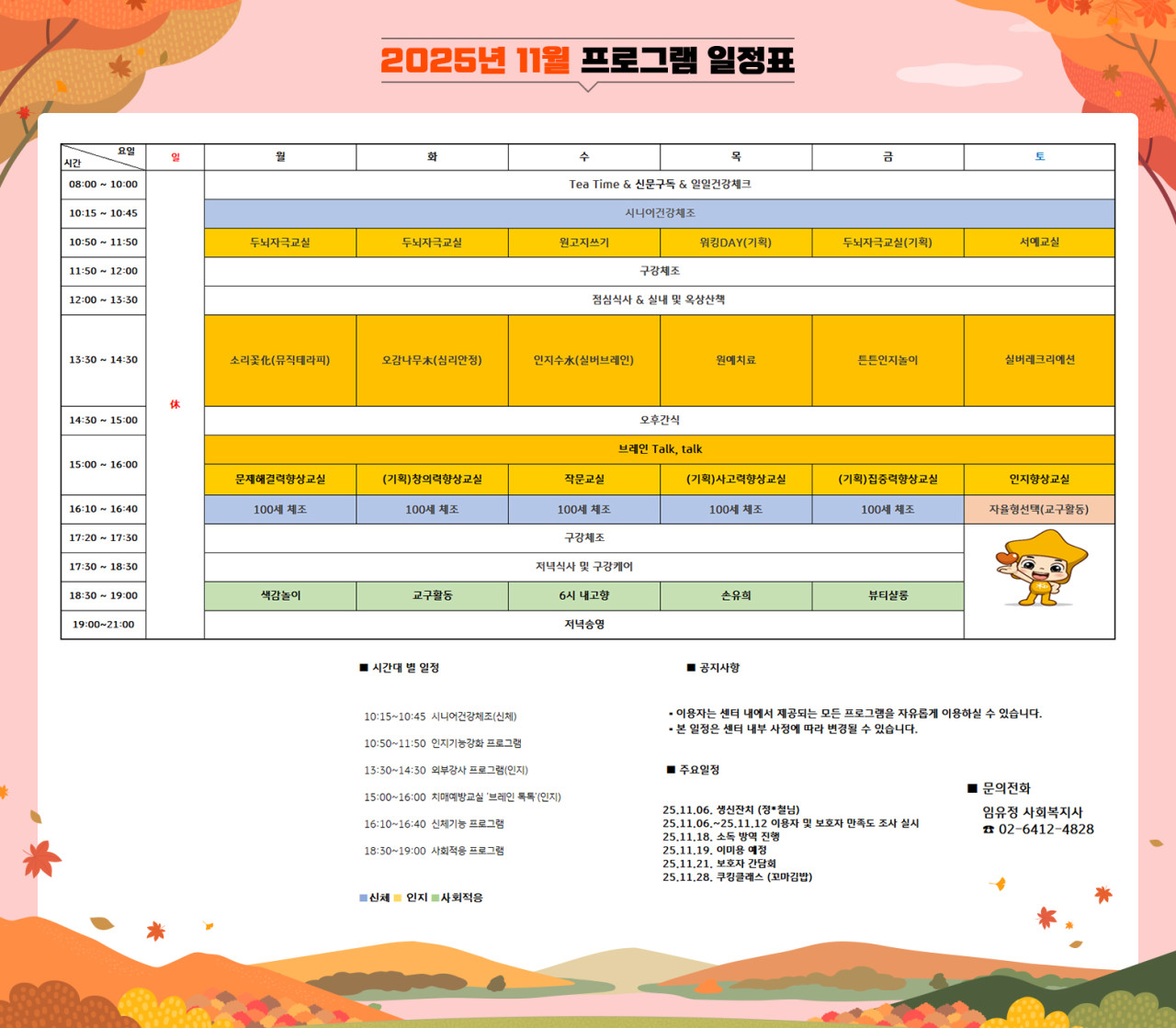 위례케어센터 [프로그램 안내] 2025년 위례케어센터 11월 프로그램 일정표