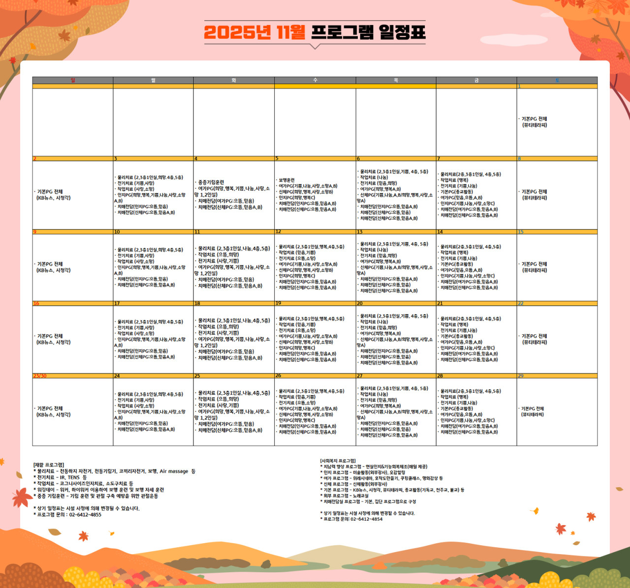 위례빌리지 [프로그램안내] 2025년 위례 빌리지 11월 프로그램 일정표 페이지 정보 작성자 최고관리자 댓글 0건 조회 2,056회 작성일 25-10-31 14:44 목록 본문 목록 이전글[프로그램 안내] 2025년 은평 케어센터 11월 프로그램 일정표 25.10.31 다음글[식단안내] 2025년 11월 1주차 식단표 25.10.31