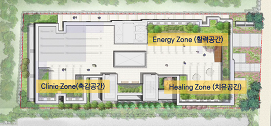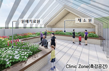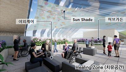 가정집 분위기로 잘 꾸며진 공용거실에는 넓은 창과 편안한 쇼파가 설치되어 자연광을 즐기실 수 있고, 중정을 통해 녹색 식물이 심어진 조경을 감상할 수 있습니다.