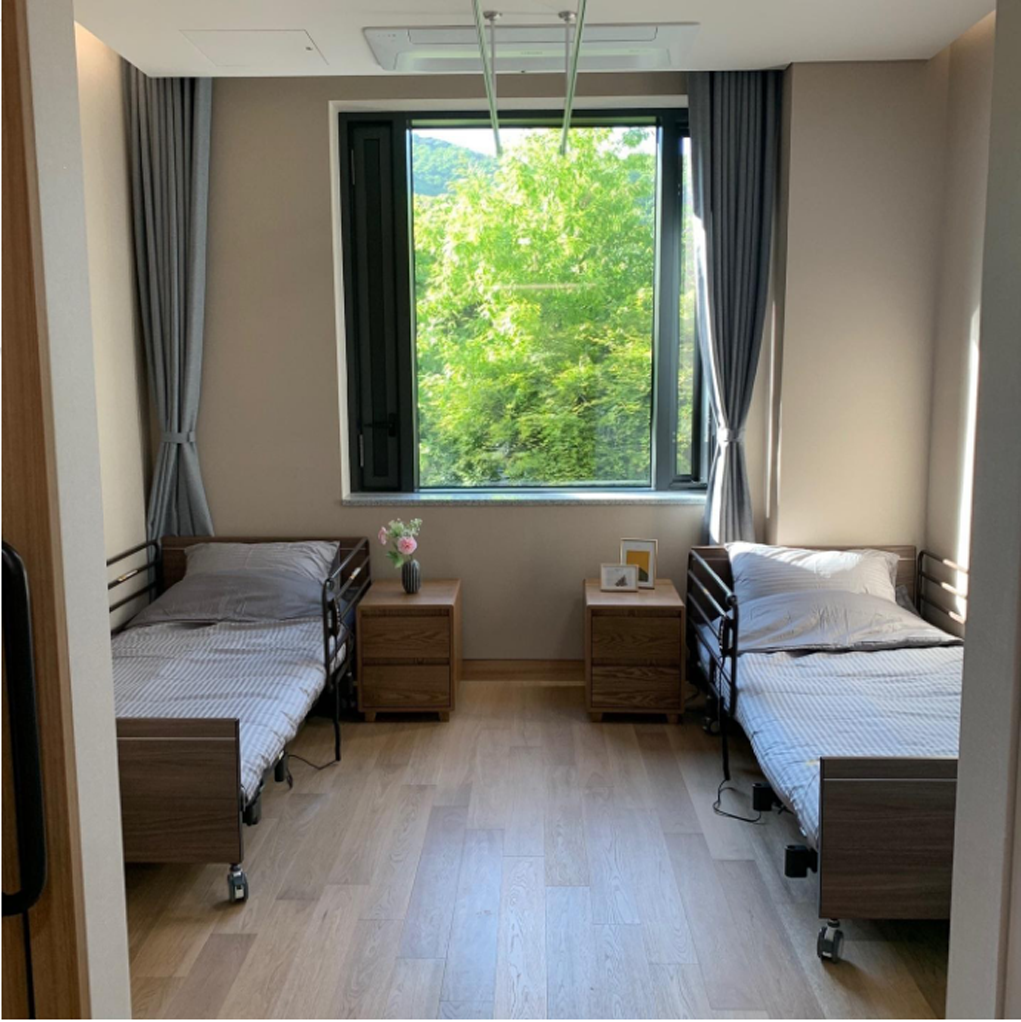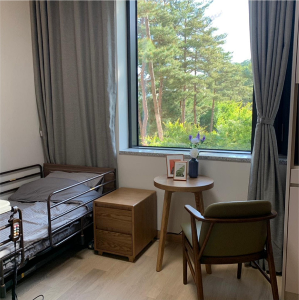 혼자서 쓰실 수 있는 넉넉한 공간과 개인욕실을 제공합니다. 어르신 취향에 맞춰 자유롭게 생활공간을 꾸밀 수 있고, 가족 및 지인들과 여유롭게 시간을 보낼 수 있습니다.