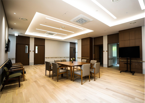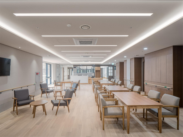 넓은 거실에서 어르신간의 커뮤니케이션이 이루어지고, 각종 프로그램이 진행되어 언제라도 참여하실 수 있습니다.