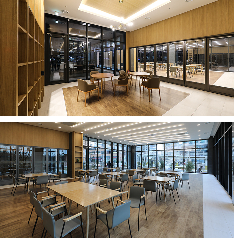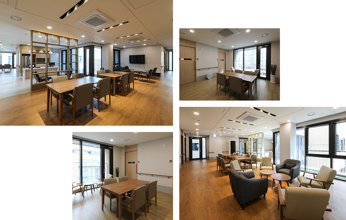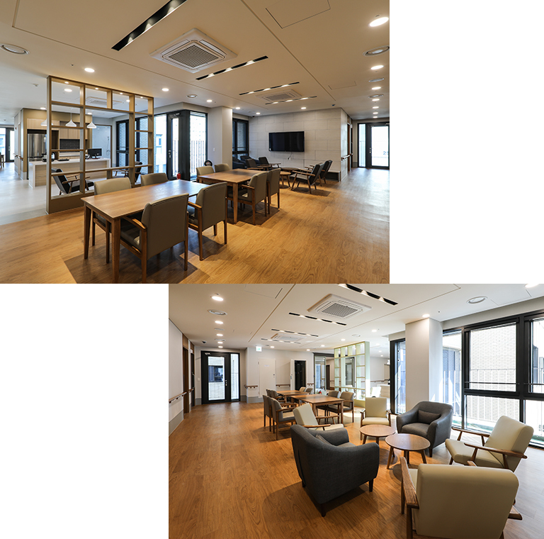 1층에 마련된 커뮤니티 공간은 어르신들이 고립되지 않고 지역사회와 소통할 수 있는 기회를 열어줍니다.