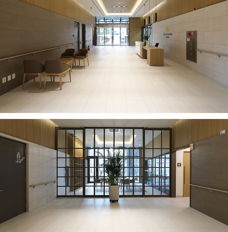 가족과 지인을 반갑게 맞이하기 위해 1층에 편안한 로비공간을 조성하였습니다.