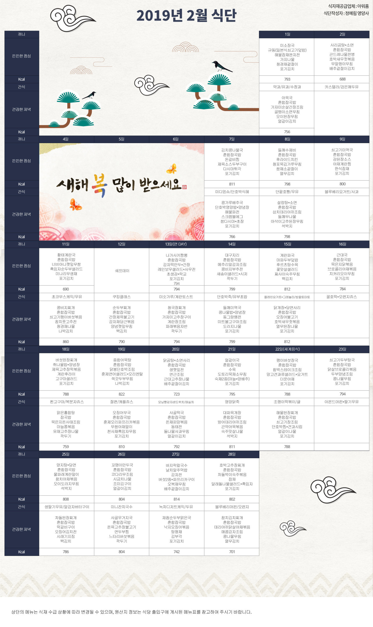 강동케어센터 [식단안내] 2019년 2월 식단표 페이지 정보 작성자 KB 골든라이프 댓글 0건 조회 4,026회 작성일 19-02-01 17:10 목록 본문 목록 이전글『KB골든라이프케어 위례 빌리지』 재활치료 장비 납품업체 선정을 위한 입찰 공고 19.02.14 다음글[프로그램 안내] 2019년 2월 프로그램 스케줄 19.02.01