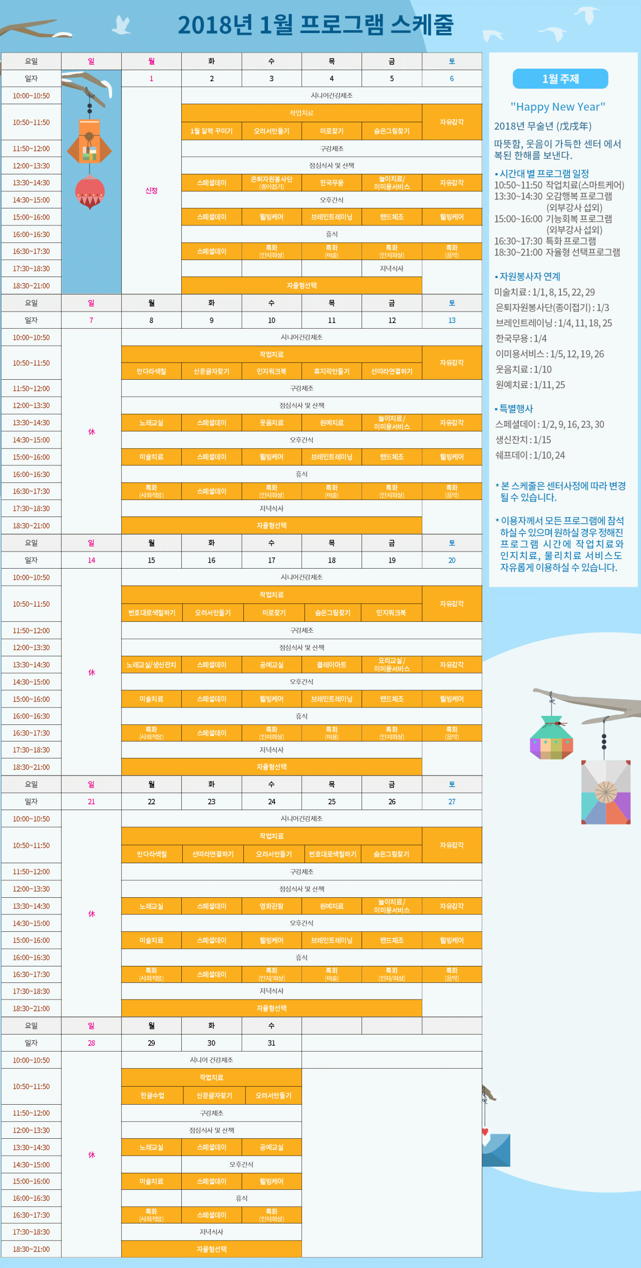 강동케어센터 [프로그램 안내] 2018년 1월 프로그램 스케줄