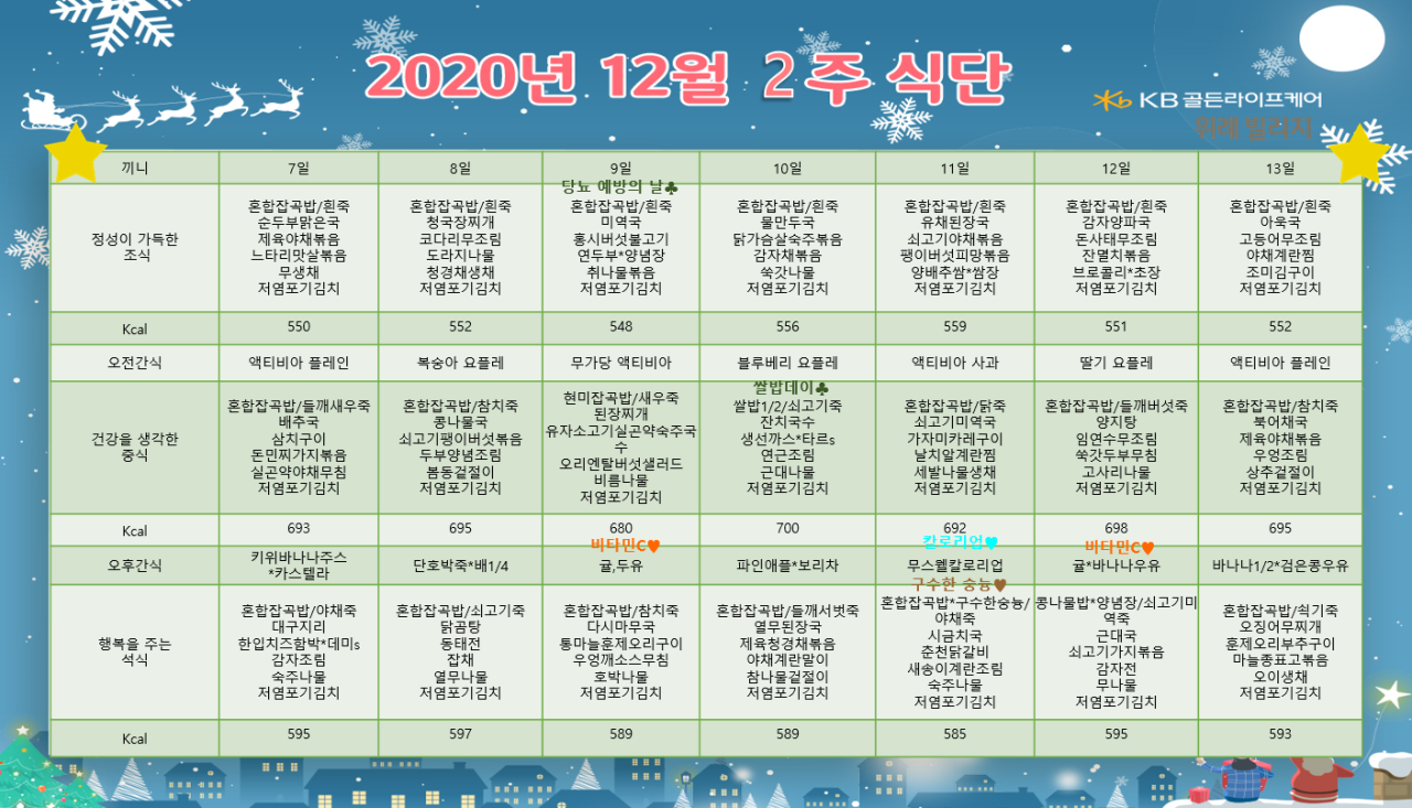 위례빌리지 [식단안내] 위례 빌리지 12월 2주차 식단표 페이지 정보 작성자 KB 골든라이프케어 댓글 0건 조회 3,386회 작성일 20-12-03 16:22 목록 본문 목록 이전글[식단안내] 위례 케어센터 12월 2주차 식단표 20.12.03 다음글[식단안내] 위례 케어센터 12월 1주차 식단표 20.11.30