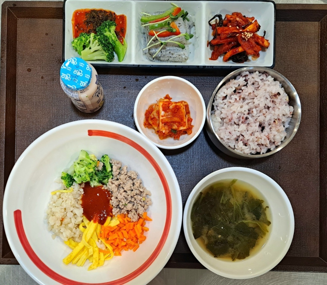 강동케어센터 [오늘의 식단] 2024년 12월 06일 중식 페이지 정보 작성자 KB 골든라이프케어 댓글 0건 조회 2,432회 작성일 24-12-06 11:43 목록 본문 안녕하세요. 12.06 중식 제공식단입니다. 소보로비빔밥(돈육) / 아욱된장국 / 청포묵흑임자마요무침 / 브로컬리톳초장무침 / 무말랭이고추잎무침 / 포기김치 / 요구르트 **KB골든라이프케어 강동점은 현대그린푸드에서 운영하는 시니어 대상 급식사업장 입니다.** 목록 이전글[식단안내] 위례 케어센터 12월 2주차 식단표 24.12.06 다음글[하루의 식단] 2024년 12월 4일 24.12.04