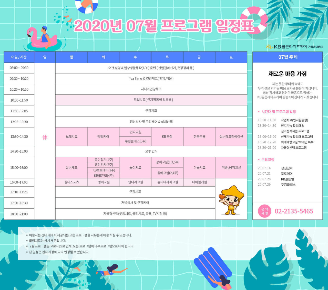 강동케어센터 [프로그램 안내] 2020년 강동케어센터 7월 프로그램 페이지 정보 작성자 KB 골든라이프 댓글 0건 조회 5,309회 작성일 20-07-01 13:34 목록 본문 목록 이전글[식단 안내] 2020년 강동케어센터 7월 식단표 20.07.01 다음글[프로그램 안내] 2020년 위례 케어센터 7월 프로그램 일정표 20.07.01