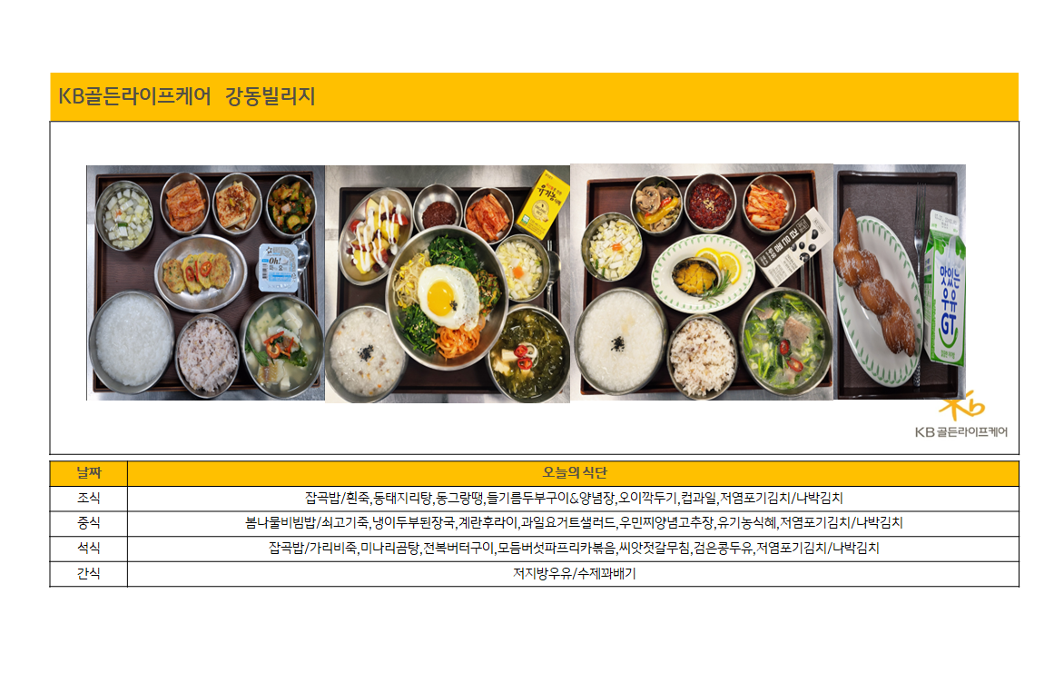 강동빌리지 [하루의 식단]강동빌리지 3월 20일 금요일 페이지 정보 작성자 최고관리자 댓글 0건 조회 3회 작성일 26-03-20 17:24 목록 본문 목록 이전글[하루의 식단] 2026년 3월 20일 26.03.20 다음글[오늘의 식단] 26년 3월 20일 금요일 중식 26.03.20