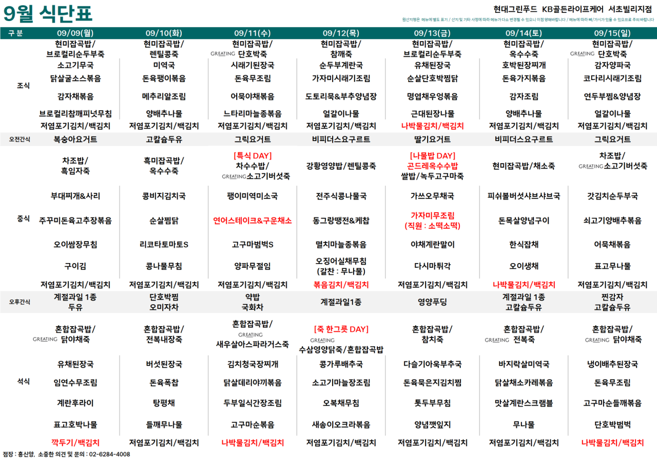 서초빌리지 [식단안내] 서초 빌리지 9월 2주차 식단표 페이지 정보 작성자 KB 골든라이프케어 댓글 0건 조회 2,091회 작성일 24-09-04 13:07 목록 본문 목록 이전글[하루의 식단] 2024년 9월 4일 24.09.04 다음글[오늘의 식단] 2024년 09월 04일 중식 24.09.04