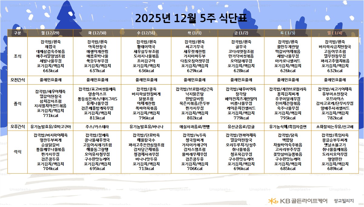 광교빌리지 [식단안내] 광교빌리지 12월 5주차 식단표 페이지 정보 작성자 최고관리자 댓글 0건 조회 4회 작성일 25-12-26 17:14 목록 본문 목록 이전글[식단안내] 2025년 12월 5주차 식단표 25.12.26 다음글[하루의 식단] 2025년 12월 24일 25.12.26