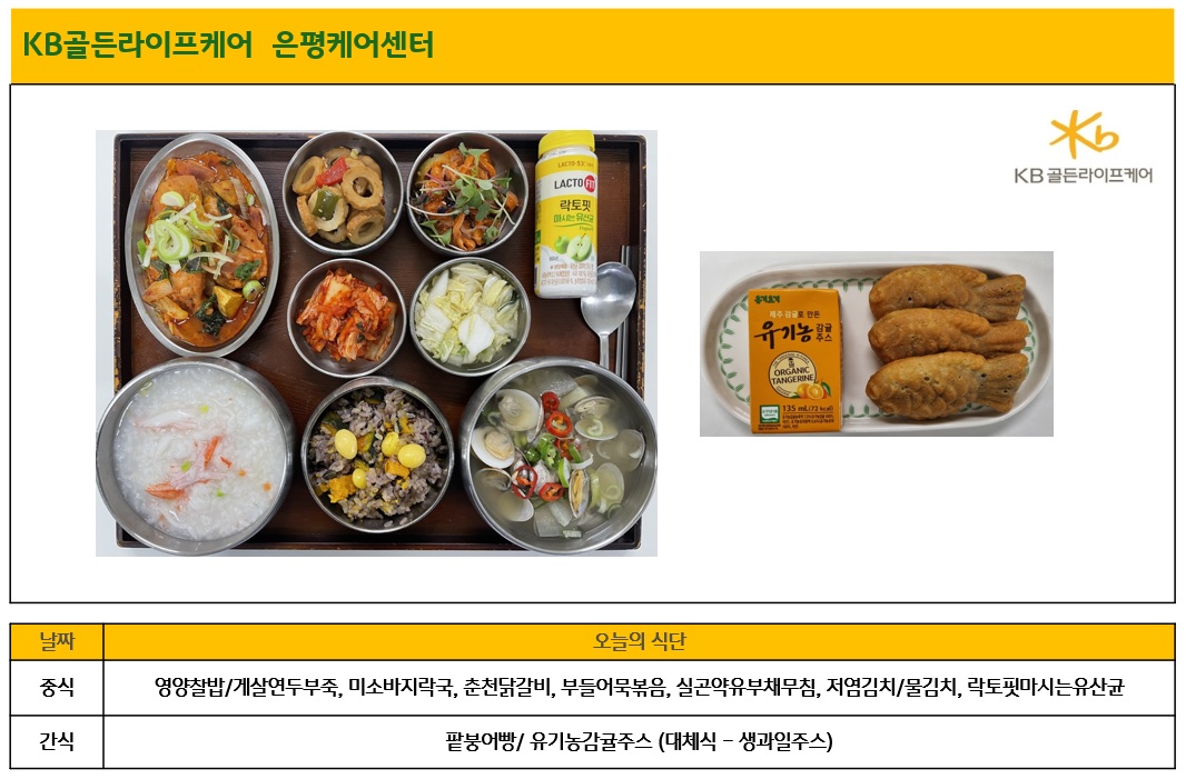 은평케어센터 [오늘의식단] 2026년 3월 24일 중식 페이지 정보 작성자 최고관리자 댓글 0건 조회 6회 작성일 26-03-26 15:33 목록 본문 목록 이전글[오늘의 식단] 2026년 3월 24일 중식 및 간식 26.03.26 다음글[프로그램 안내] 2026년 4월 광교 케어센터 프로그램 일정표 26.03.26