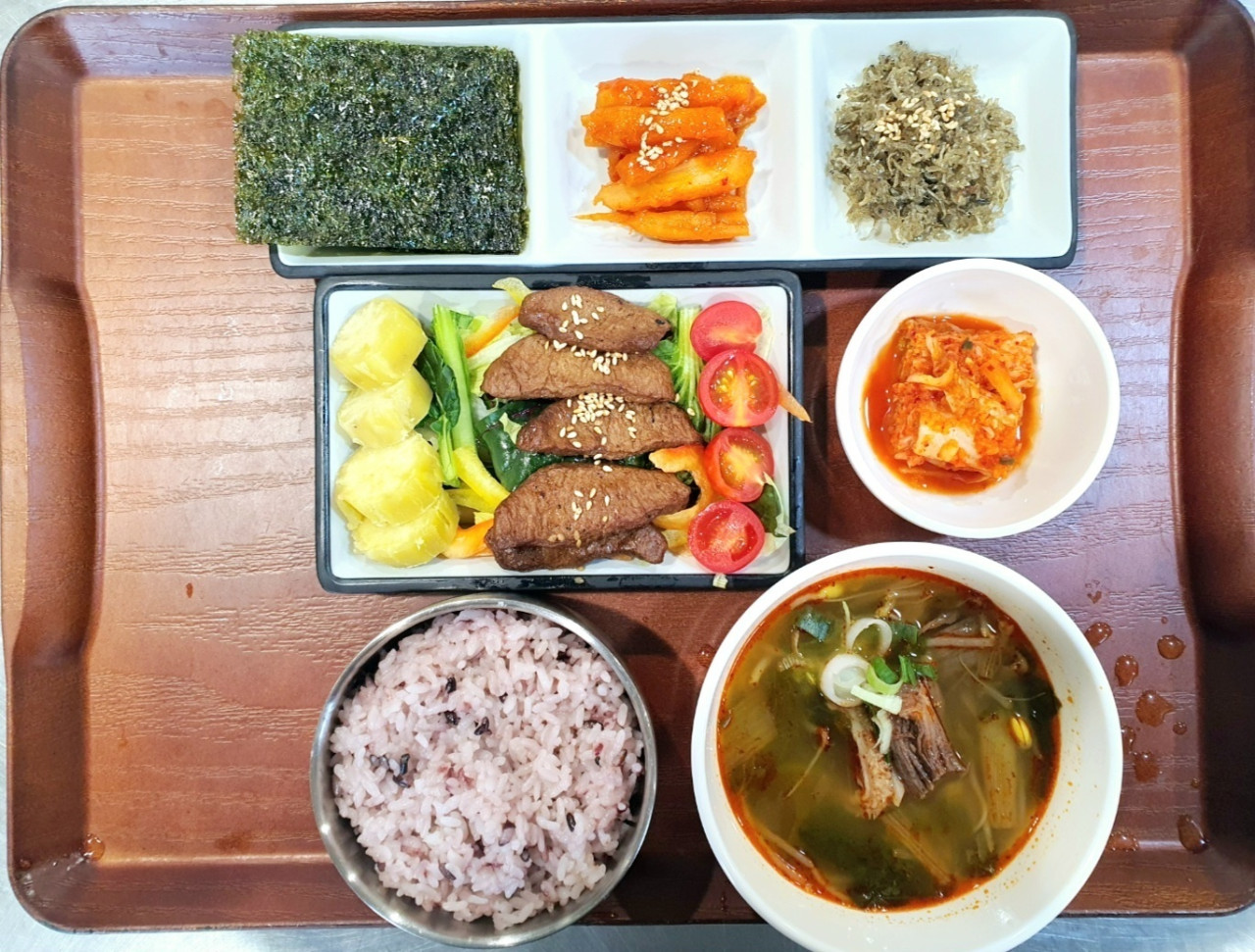 강동케어센터 [오늘의 식단] 2024년 10월 15일 중식 페이지 정보 작성자 KB 골든라이프케어 댓글 0건 조회 2,260회 작성일 24-10-15 12:10 목록 본문 안녕하세요 10.15 중식제공 식단입니다. 양해장국 / 베지미트고구마샐러드 & 오리엔탈드레싱 / 멸치볶음 / 고추장더덕무침 / 구이김 / 포기김치 / 잡곡밥 베지미트고구마샐러드는 양상추, 그린비타민, 파프리카, 당근, 방울토마토, 고구마, 베지미트(콩고기) 등 총 7가지의 식재료를 넣어 샐러드로 어르신들께 제공드렸으며, 콩고기 경우 불향을 입혀 풍미를 더했습니다. **KB골든라이프케어 강동점은 현대그린푸드에서 운영하는 시니어 대상 급식사업장 입니다.** 목록 이전글[하루의 식단] 2024년 10월 15일 24.10.15 다음글[식단안내] 서초 빌리지 10월 3주차 식단표 24.10.11