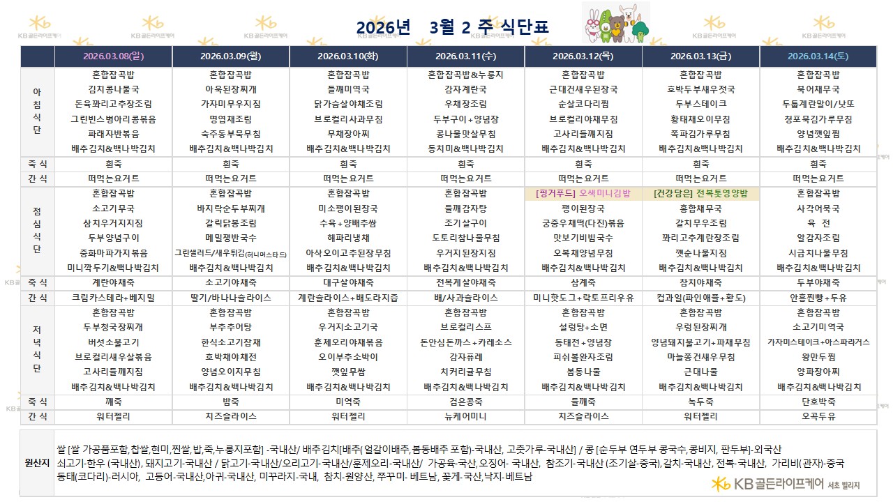 서초빌리지 [식단안내 ] 서초빌리지 3월 2주 식단표