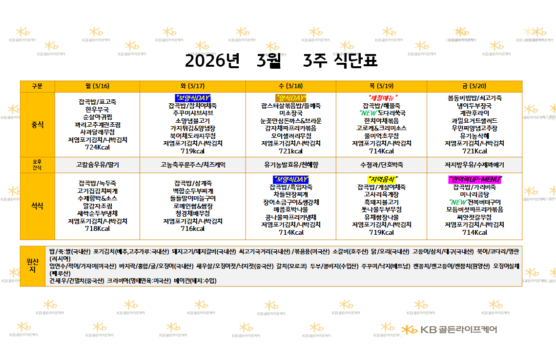 강동케어센터 [식단안내] 2026년 3월 3주 식단표 페이지 정보 작성자 최고관리자 댓글 0건 조회 130회 작성일 26-03-13 16:57 목록 본문 목록 이전글[하루의식단] 2026년 3월 13일 26.03.13 다음글[식단안내] 2026년 3월 3주 식단표 26.03.13