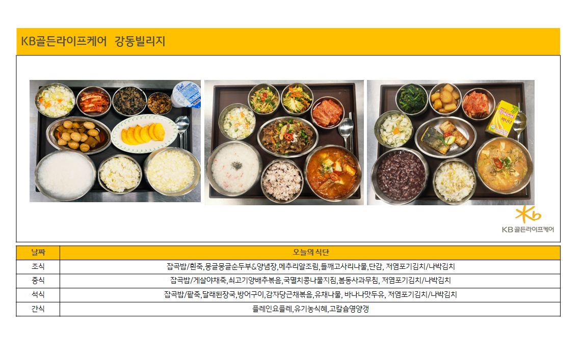 강동빌리지 [하루의 식단]강동빌리지 12월 17일 수요일 페이지 정보 작성자 최고관리자 댓글 0건 조회 1회 작성일 25-12-19 15:57 목록 본문 목록 이전글[식단안내]강동빌리지 12월 4주차 주간식단표 25.12.19 다음글[식단안내] 2025년 12월 4주차 식단표 25.12.18
