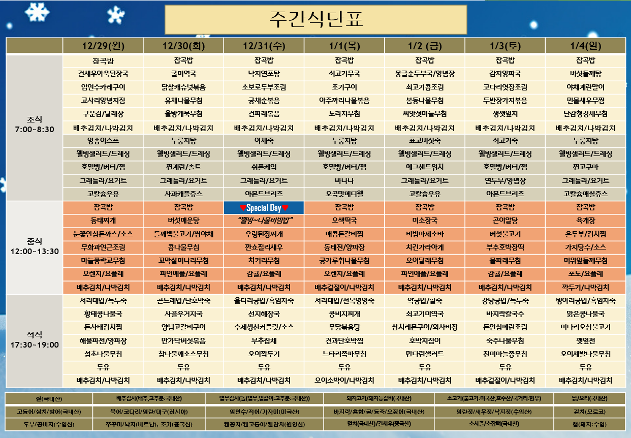 평창카운티 [식단안내] 2025년 12월 5주차 식단표 페이지 정보 작성자 최고관리자 댓글 0건 조회 132회 작성일 25-12-30 13:13 목록 본문 목록 이전글[식단안내] 2025년 12월 5주 식단표 25.12.30 다음글[식단안내] 2025년 12월 5주 식단표 25.12.30